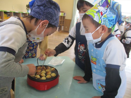 「たこ焼き機でくるくるしたーい!」「たのしみ~😋」「今日はたこ焼きパーティーだよ!」