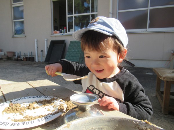 中庭に出て遊びました。