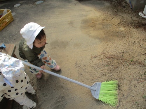 大人がすることを上手に真似っこしてやっていました😄