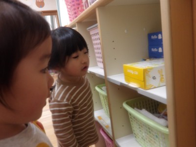 おばけが隠れるまではみんなで「いーち、にーい、さーん、、、」と数字を数えたり、「もういーかーい!」と元気に聞いてみたりしました!「もういーよー」と聞こえてくるとわくわくした気持ちでおばけを探し始める子どもたちです🎵
