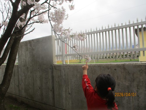 見つけた桜を園長先生に「ピンクのお花~」と見せに行きました!
