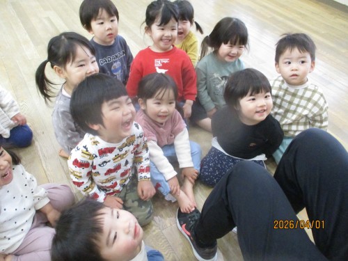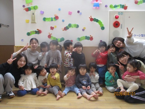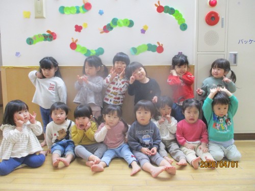 ひばり組の部屋に入る時ニコニコな子どもたち😊