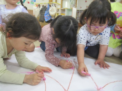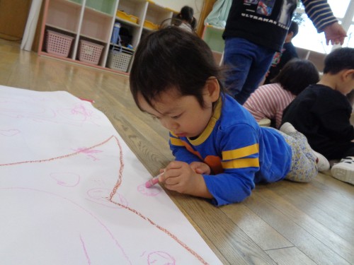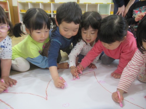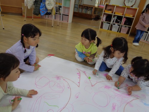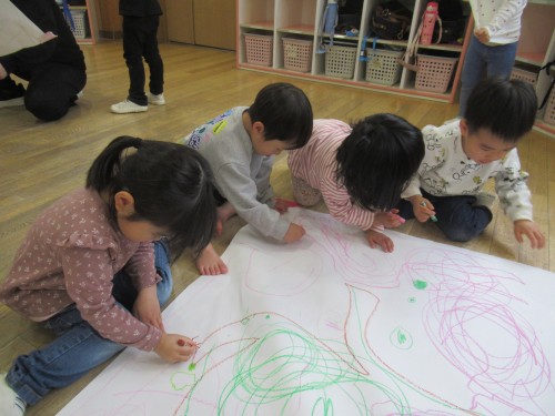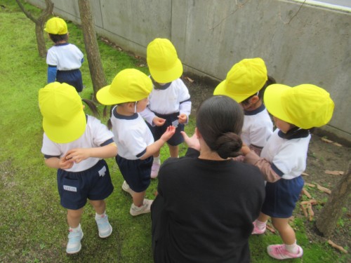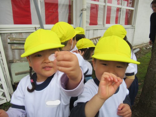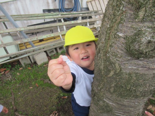 お部屋に帰ってから、探検で見つけた桜の木をみんなで