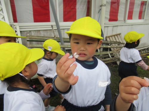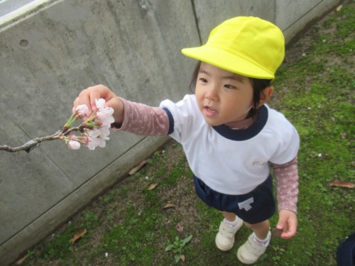 花びらが落ちてたね😊「ふわふわしてる~」「かわいいね♡」