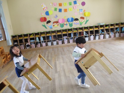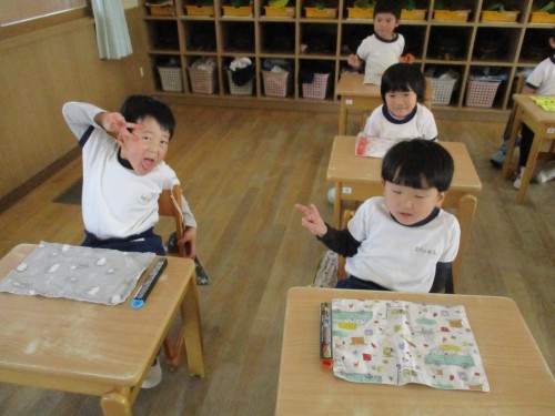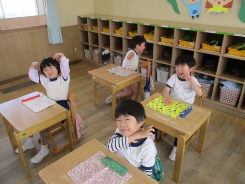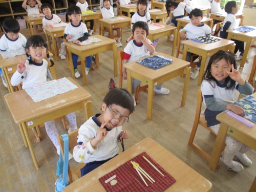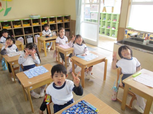 「自分の机で給食食べたい!」ということでみんなで机で食べることにしました!