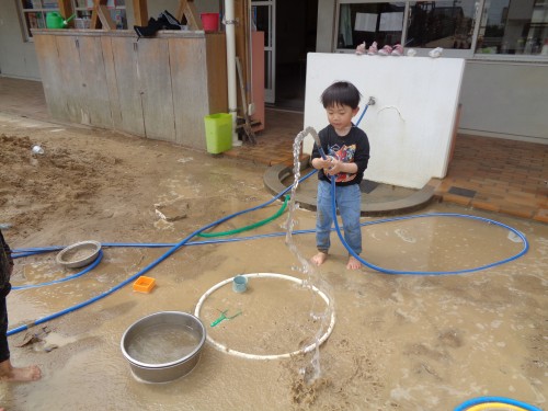 たくさんお水がたまったら、プールにジャ~~~~ンプ😄