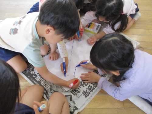 図鑑が完成し、園長先生にも見てもらい、大喜びのはと組でした!