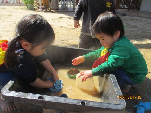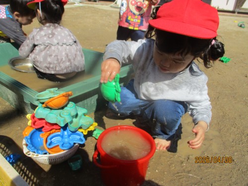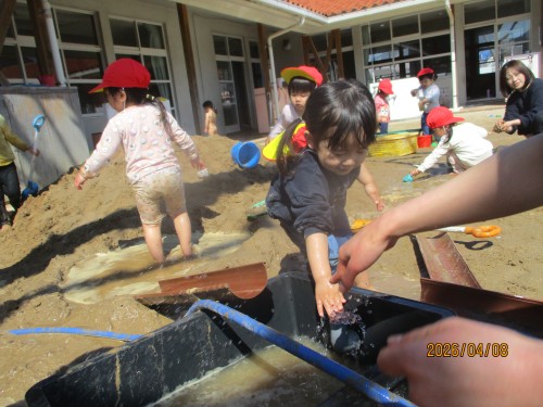 水をすくって入れるのが楽しいね!