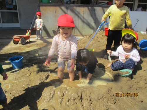 天気が良かったので、水や泥でも遊んだよ♡