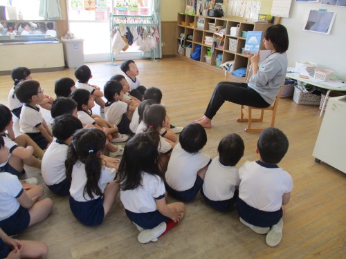 雲の絵本を図書館で借りて持ってきてくれました。みんなと読みました。