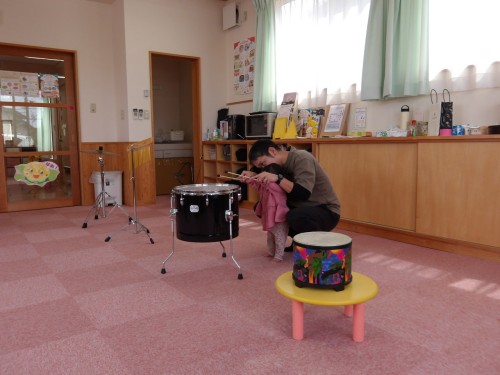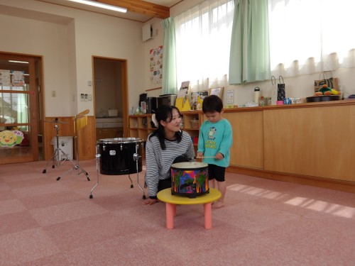 曲に合わせて太鼓やシンバルを叩きます🥁