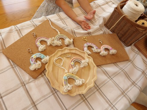 親御さんたちとオリジナルの虹のマクラメを作りました!