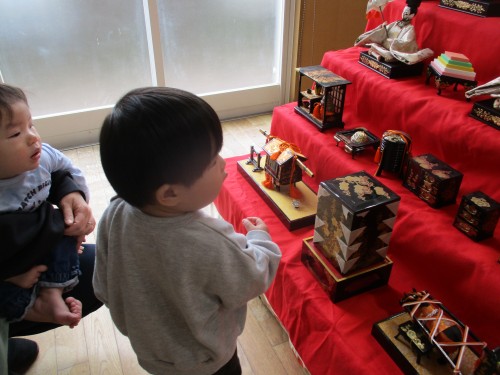 幼稚園の廊下のひな人形も見に行きました👀