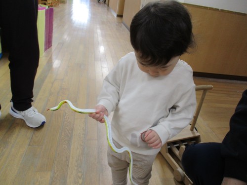 廊下をお散歩していたら、ヘビのおもちゃを発見!👀