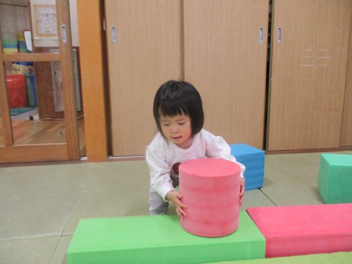 大きなソフト積み木を一生懸命組み立てています!大きい積み木なのにすごい!!