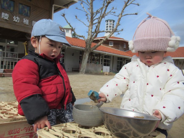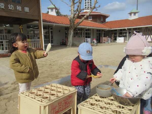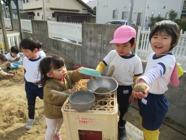 園庭でかけっこやごちそう作りを楽しみました。