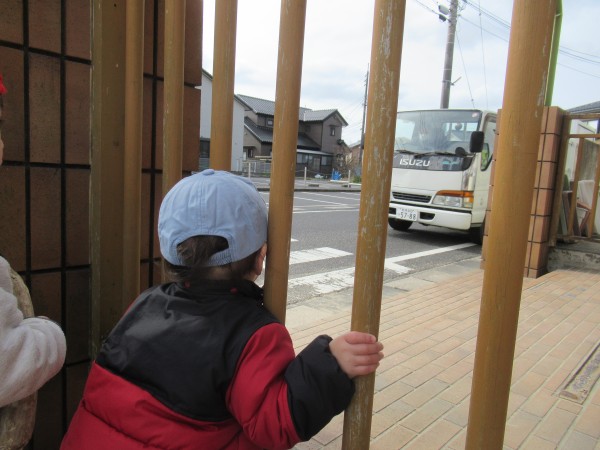 はたらくくるまに釘付けです。エンジンがかかると、バイバイと手を振っていました。