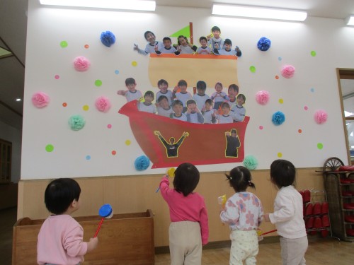 幼稚園の廊下も探検しました!!(廊下探検中に1歳未満の子どもたちは午前睡をしています!)