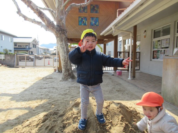 「しぇんしぇみてみて~」とかっこいいピースでポーズ✌