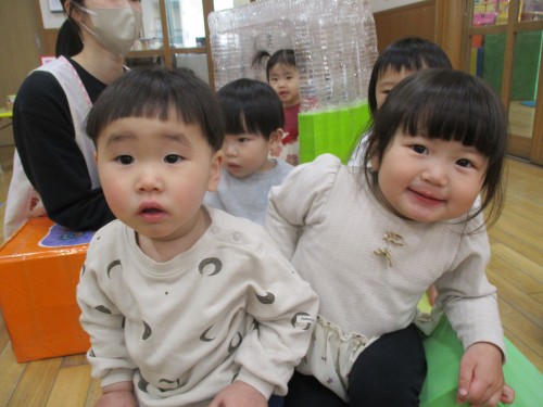 ソフト積み木に座って仲良くハイチーズ📸