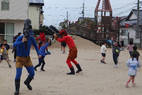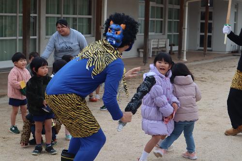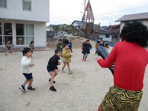 自分の中の泣き虫な鬼や怒りんぼな鬼を外へ追い出そうと豆まきをしました。