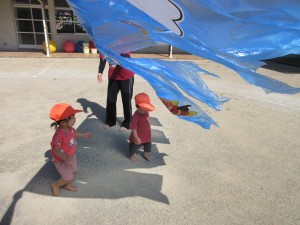 広いお庭にアンパンマントンネルが出現!みんなでよーいドンして思いっきり走りました!