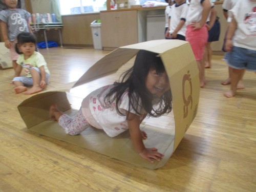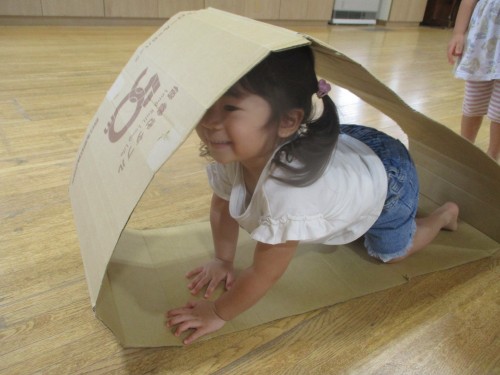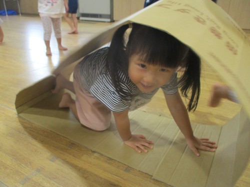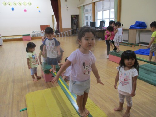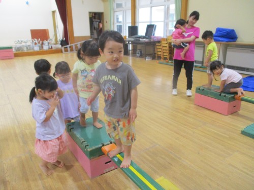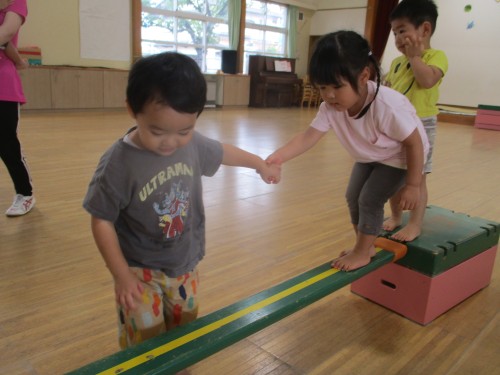 手をもって支え、すぐに手を離すと自分で渡れるように