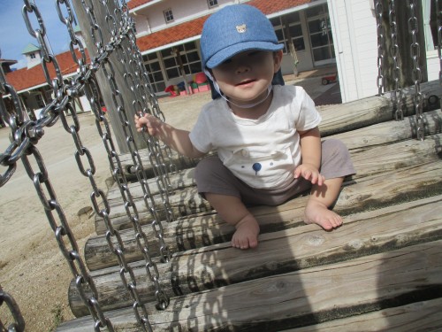 久しぶりの揺れる橋!どうやって前に進もうか考えてたね👀