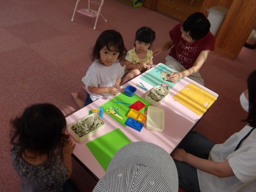 こねたり、丸めたり、切ったり、様々な遊び方で楽しみました😄