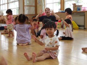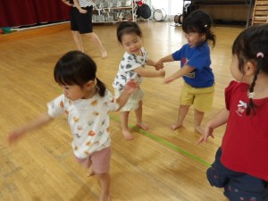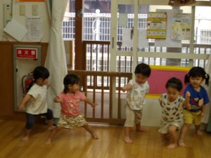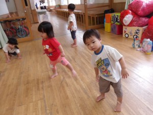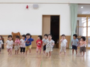 今日はひよこさん、ひばりさんと一緒に運動会の競技にもある体操とかけっこを遊戯室でやってみました!