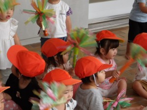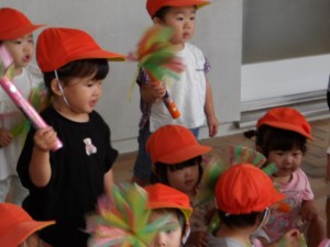 今日は運動会の活動を始める前に3,4,5歳児クラスのお兄さんお姉さんの運動会の練習を応援しに行きました!