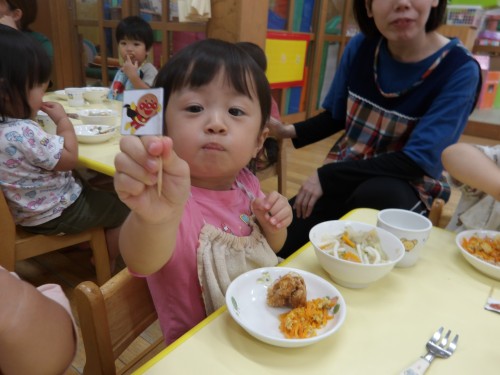 唐揚げにはみんなの大好きなアンパンマンをつけてもらい運動会がますます楽しみが持てるようにしていただきました!