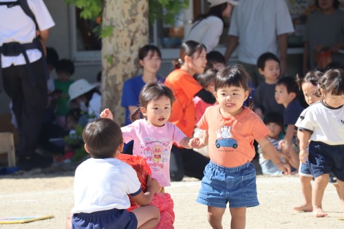 またりす組との競技では優しく手を繋ぎ、手を引いてあげる