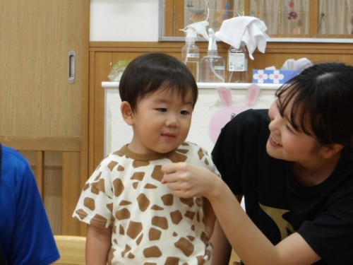 今日は10月の誕生会をしました★みんなに歌を歌ってもらったり、お楽しみを見て楽しみました!インタビューでは名前、年齢、好きな食べ物を質問されると、保育者と一緒に答える場面もありましたよ!たくさんの人にお祝いしてもらい、照れながらも嬉しそうな誕生児でした!