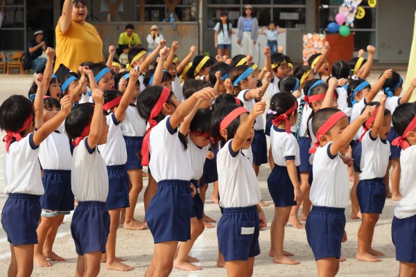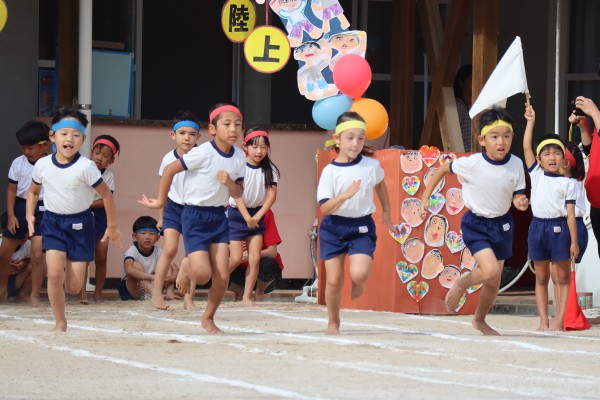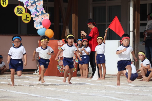 大きな声の色別入場からいよいよ競技が始まるとウキウキしてきました。開会式での運動会の歌や姿勢、体操からも運動会へのやる気が伝わってきます。🔥