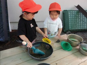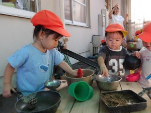 外でのままごとは久しぶりでしたが、以前よりも友だちとのやり取りが増えたり、道具の使い方が上手になっていたり、遊び方が変わっていたりと成長している姿を感じました✨