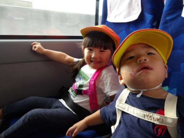 バスでは周りの風景を見て空に飛ぶ鳥を指さしたり、すれ違う乗り物に興奮し大きな声が出る場面もありました。