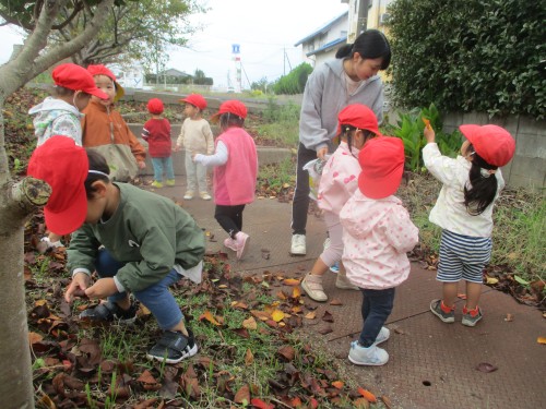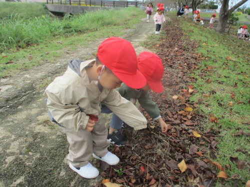 今日は土手に秋の葉っぱとどんぐりを探しに