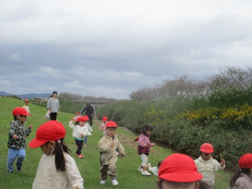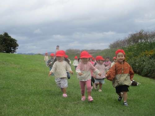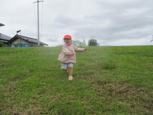 もう一つ橋を越えると、広い斜面のある土手があります!