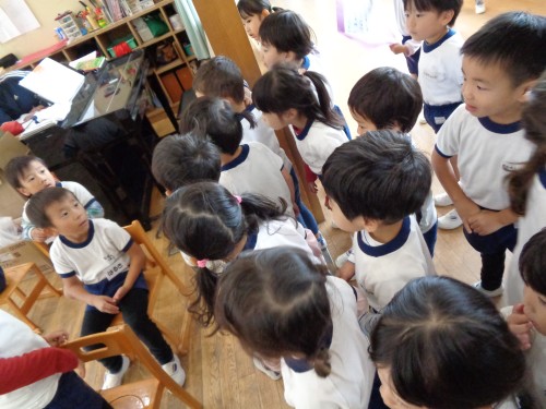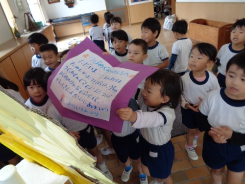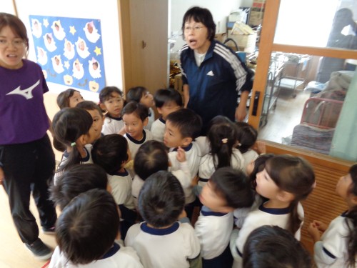 と、ふくろう組さんや、園長先生に見てないか聞きに行きました