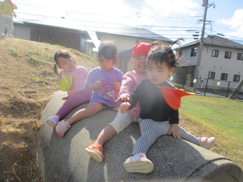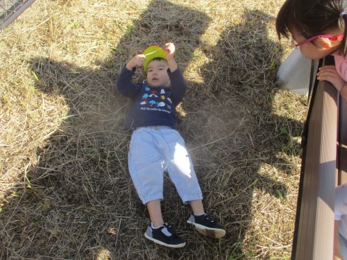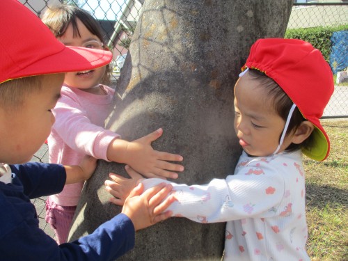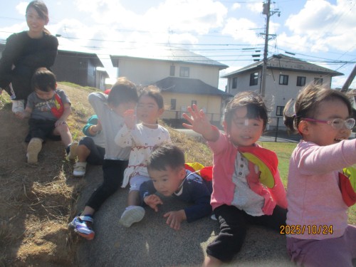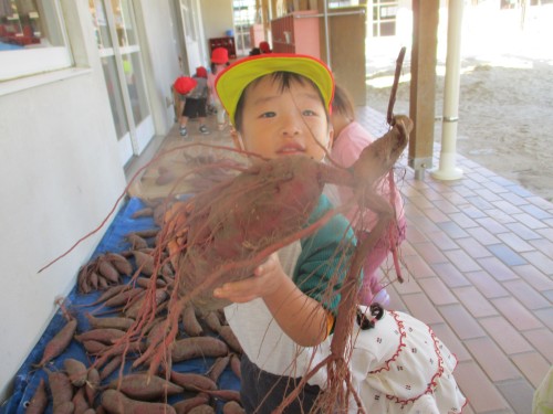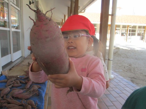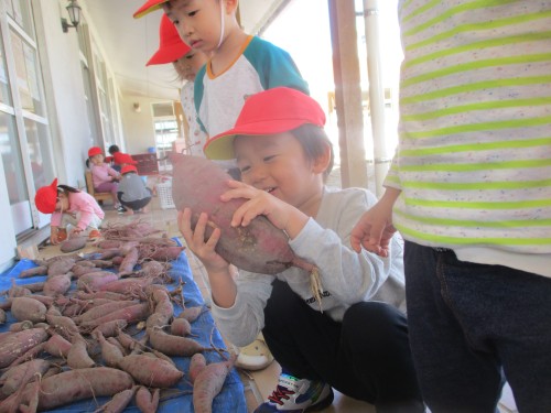 みんながとったサツマイモよりも大きなサツマイモがあって興味津々の子どもたちでした👀