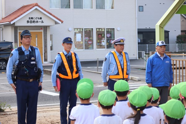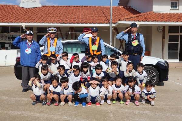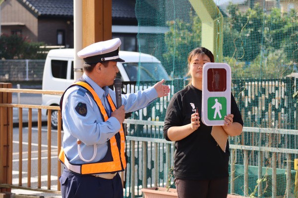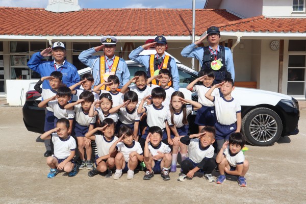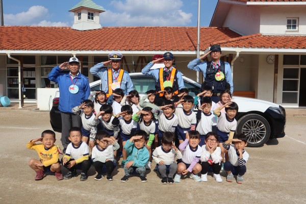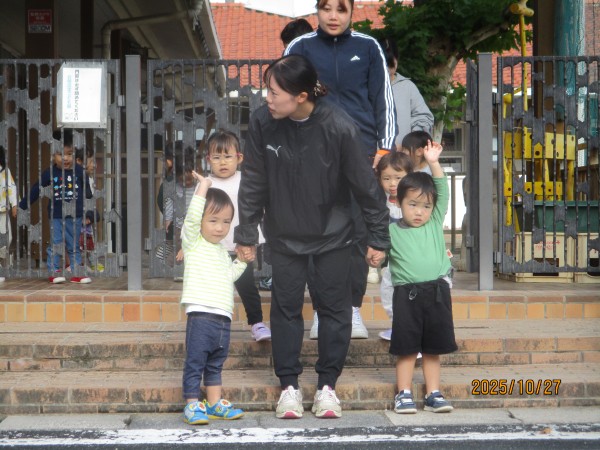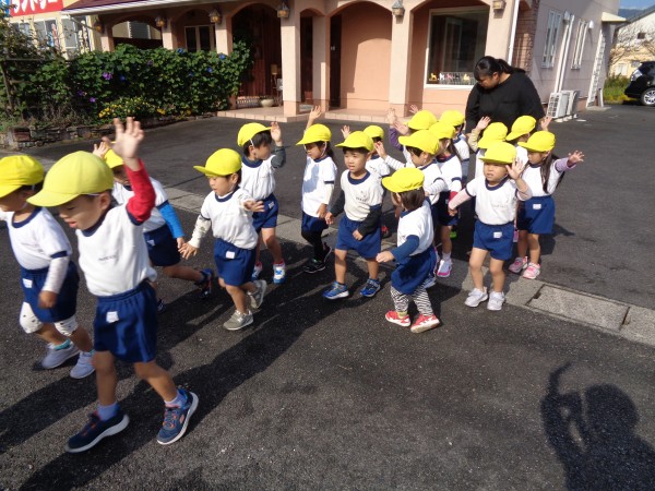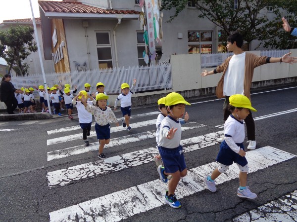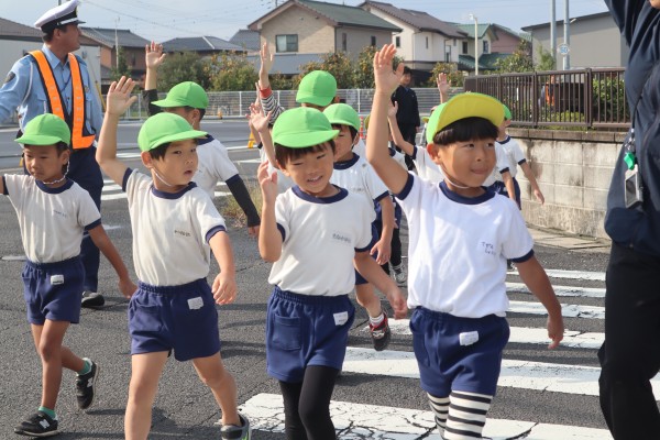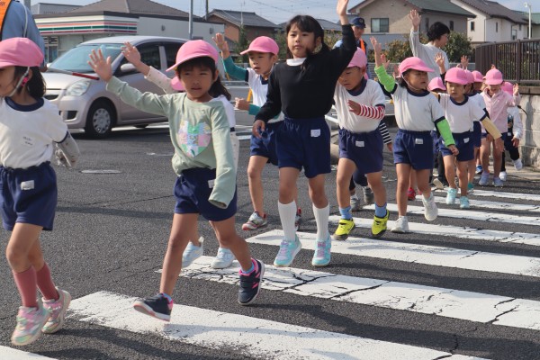 横断歩道ではしっかり手を挙げて手を耳につけて渡る子どもたちでした。