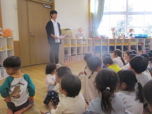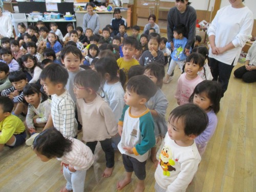 話を聞いた後はクラスごとに挨拶の練習をしてみました。ひばり組さんトップバッターです!