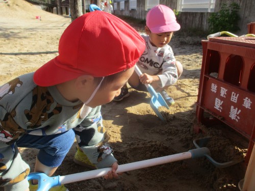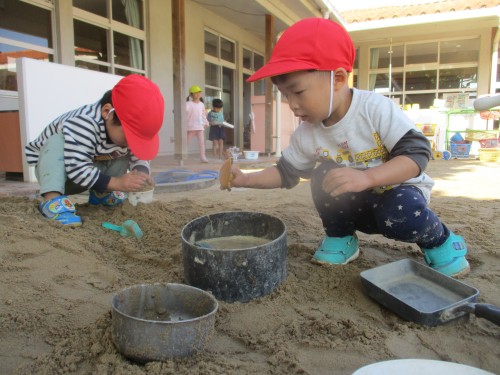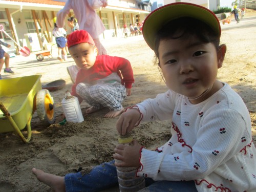 砂場の感触、気持ちがいいね~.。o○