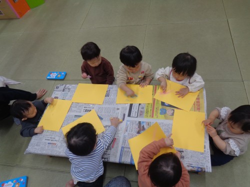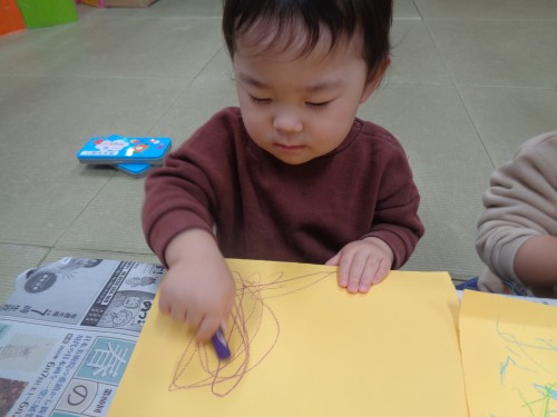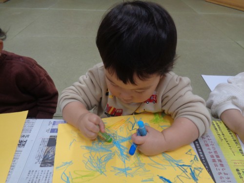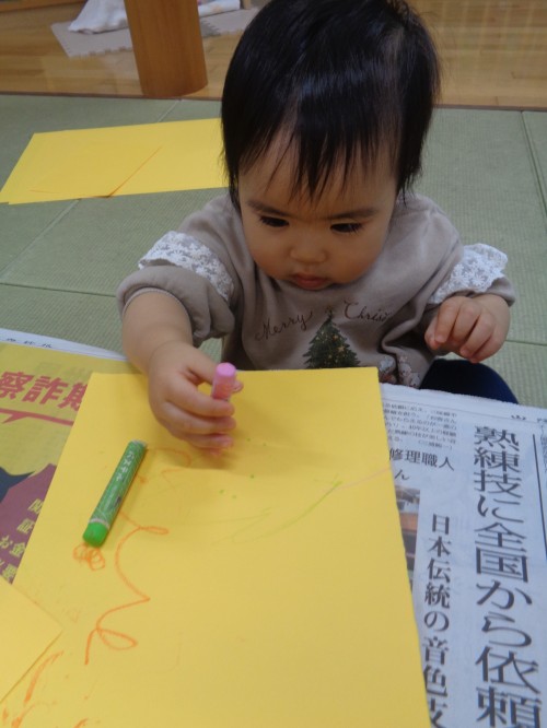 月齢差はありますが、クレヨンを持つことやトントンと叩くこと、描くこと様々な楽しみ方で楽しんでいました✨
