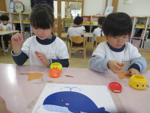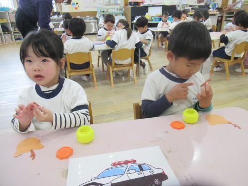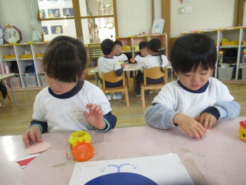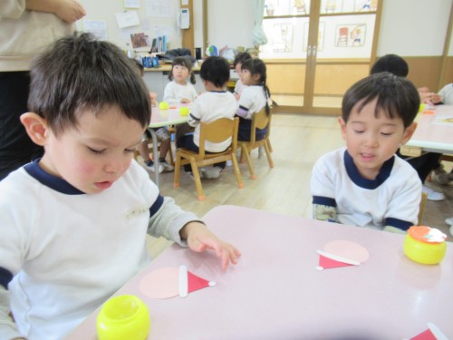 ノリでパーツを付けて、それぞれに顔を描きました✒