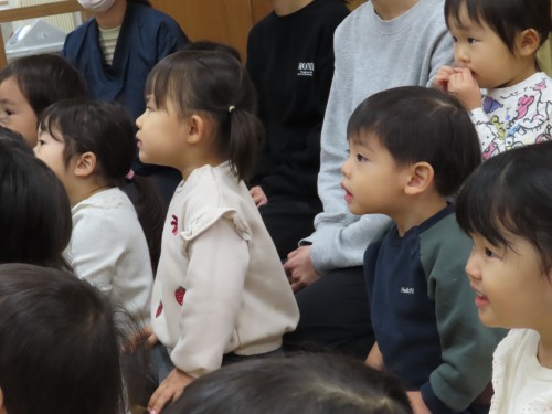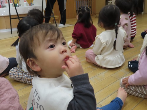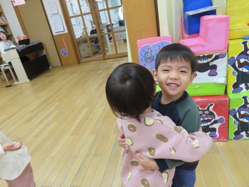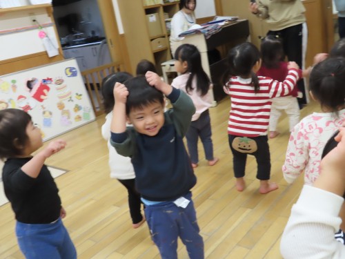 今日はお天気が良かったので園庭に出て遊んだり、12月生まれのお友だちのお誕生日会を見に行ったり、りす組さんと朝の会を一緒にしました☆
