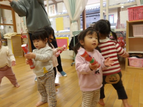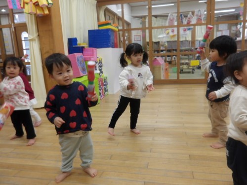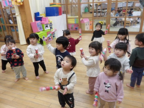 ジングルベルの曲に合わせて踊ったり、楽器を振ったりしました✨