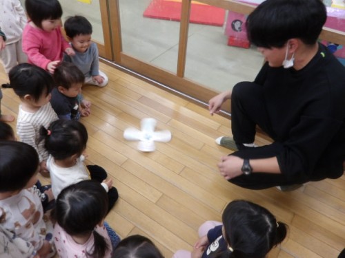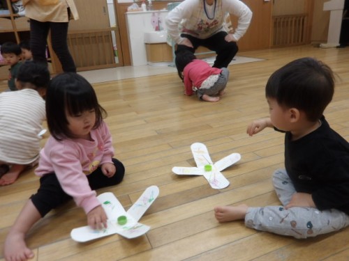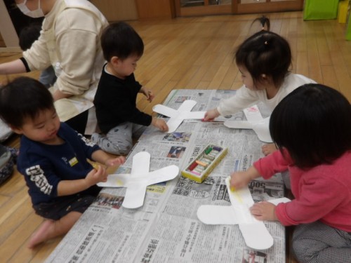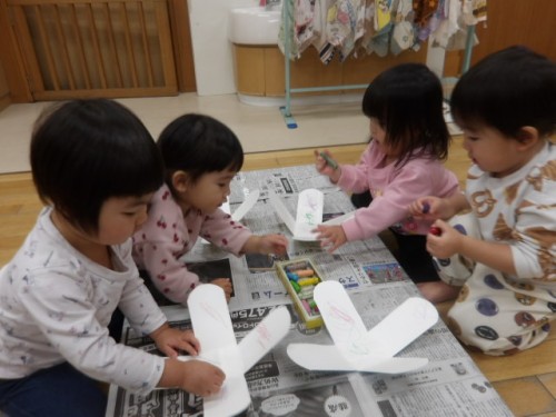 牛乳パックのこまに、クレヨンで模様を描いてもらいました😊
