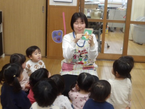 担任がいうとゆっくりですが指を指したり、手を出すりす組さん!